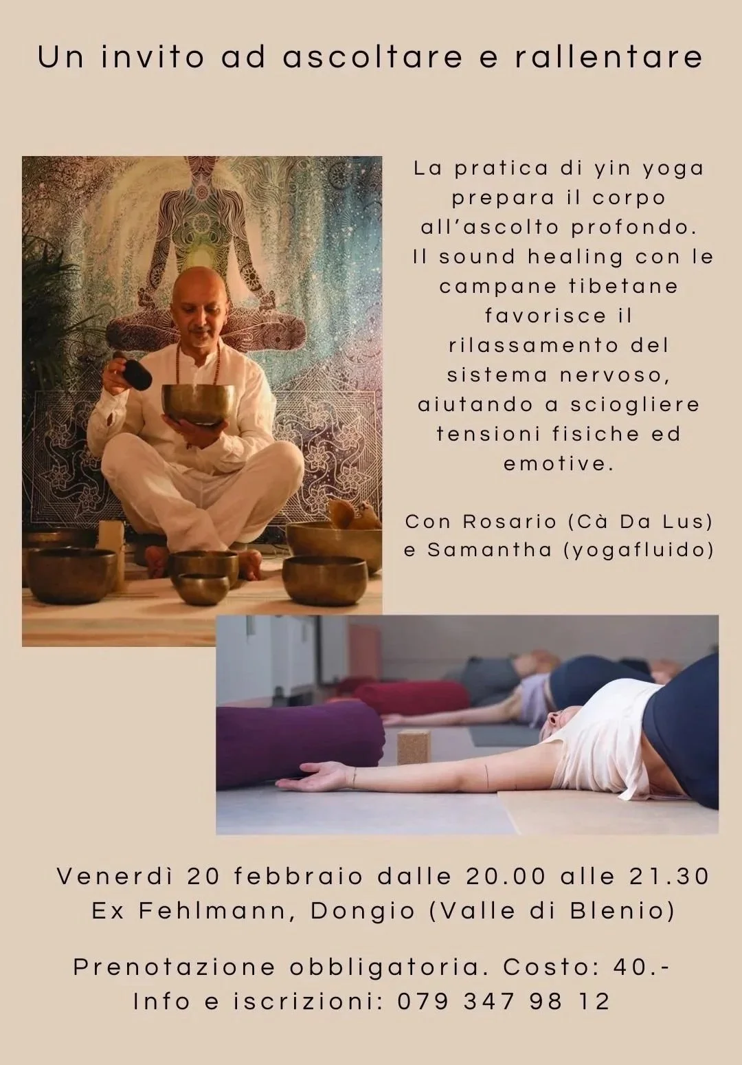 I posti sono limitati, per domande e iscrizioni contattatemi allo 079 347 98 12.
